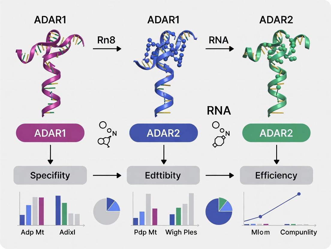 This guide compares the editing profiles of ADAR1 and ADAR2 against canonical and complex endogenous substrates, focusing on specificity and efficiency metrics critical for therapeutic design.