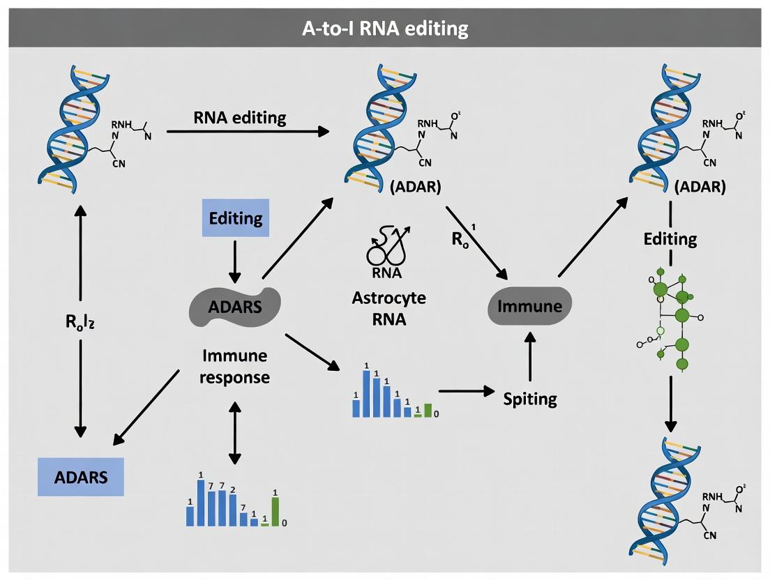 A-to-I RNA editing emerges as a sophisticated, tunable epitranscriptomic layer critically fine-tuning the astrocyte immune response. Dysregulation of this system contributes significantly to neuroinflammatory pathophysiology. Moving forward, integrating advanced single-cell and spatial transcriptomic tools with precise gene editing technologies will be paramount to dissect the causal roles of specific editing events. The future of this field lies in developing CNS-permeable, ADAR-specific modulators and leveraging astrocyte-specific delivery systems. Harnessing the A-to-I editome represents a promising, novel frontier for developing disease-modifying therapies that target the innate immune axis in a wide spectrum of neurological disorders, from autoimmune conditions like multiple sclerosis to neurodegenerative diseases such as ALS and Alzheimer's.